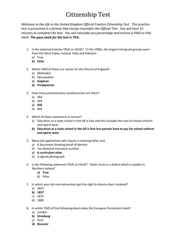 U.S. Citizenship test free online practice exams 2018. Thanks us citizenship support team for a very organized and straightforward online program. A big help for the preparation to this interview and i would 100% recommend this program to everyone who will be sitting their citizenship test. U.S. Naturalization citizenship test sample video, 2018. · there are 100 civics questions on the naturalization test. During the naturalization interview, applicants will be asked up to 10 questions from the list of 100 questions in english. Us citizenship test practice test geeks. The u.S. Citizenship test is an important step in your u.S. Citizenship application. During the citizenship interview, a us citizenship and immigration officer will ask the applicant ten(10) questions. The applicant must answer six(6) out of the ten(10) questions correctly in order to pass the civics p. Search for us citizenship questions with 100's of results at webcrawler. Free us citizenship test practice easily pass. The citizenship quiz contains all 100 of the uscis naturalization exam questions and answers.* Although the citizenship test is not done in multiple choice (you will have to know the answer), taking the quiz as many times as needed, will help you prepare for any of the citizenship test questions and the answers that can be asked during the interview. U.S. Citizenship test questions thoughtco. All applicants who filed for naturalization on or after october 1, 2008 are be required to take the new test. In the citizenship test , the applicant for citizenship is asked up to 10 of the 100 questions.